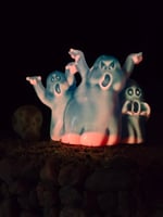 A glow in the dark resin bootleg of a vintage ghost trio toy. Each figure stands around 2" tall.